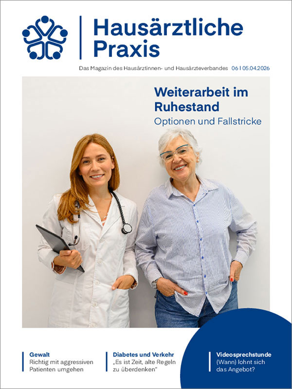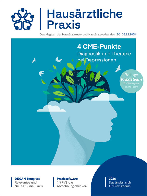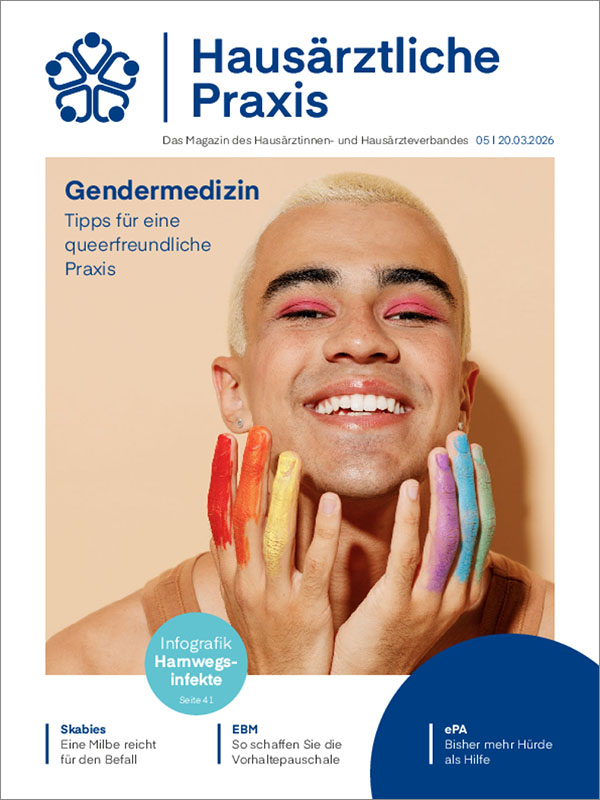 HAUSÄRZTLICHE PRAXIS ist die offizielle Verbandszeitschrift des Hausärztinnen- und Hausärzteverbandes. Mitglieder erhalten sie kostenfrei alle zwei Wochen (20 Mal im Jahr). Auf knapp hundert Seiten werden Hausärztinnen und Hausärzte über alle relevanten Themen rund um die Hausarztpraxis informiert – und das aus erster Hand! Ob Gesundheitspolitik, Praxiswissen oder medizinische Inhalte – mit HAUSÄRZTLICHE PRAXIS bietet der Hausärztinnen- und Hausärzteverband seinen Mitgliedern fundierte Beiträge zu vielfältigen Themen, immer aktuell und auf hohem inhaltlichen und fachlichen Niveau.
