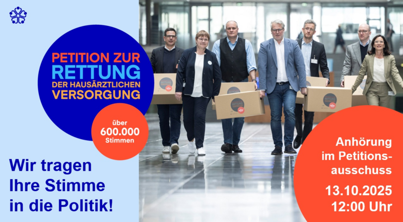 Unsere gemeinsame Petition mit dem Verband medizinischer Fachberufe e.V. (vmf) zur Stärkung der hausärztlichen Versorgung war ein unglaublicher Erfolg. Mit insgesamt 660.000 Unterschriften handelt es sich um eine der größten Bundestagspetitionen aller Zeiten! Damit haben wir als Hausärztinnen- und Hausärzten im politischen Berlin und darüber hinaus ein unmissverständliches Signal gesendet: Politik gegen die Hausarztpraxen ist Politik gegen die Menschen.