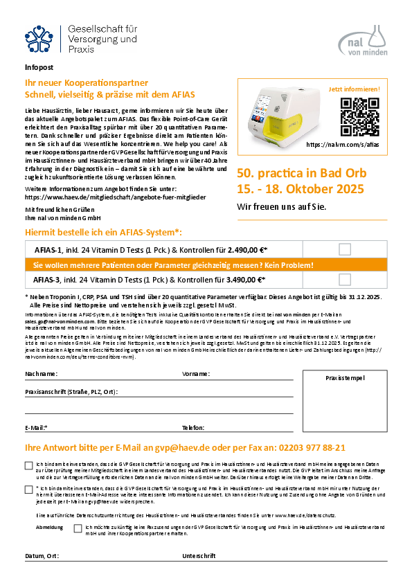 Seit über 40 Jahren steht nal von minden für zuverlässige, zertifizierte Diagnostiklösungen. Mit dem AFIAS-System bringen sie Laborqualität direkt in Ihre Praxis – für bessere Entscheidungen, mehr Effizienz und eine moderne Patientenversorgung.